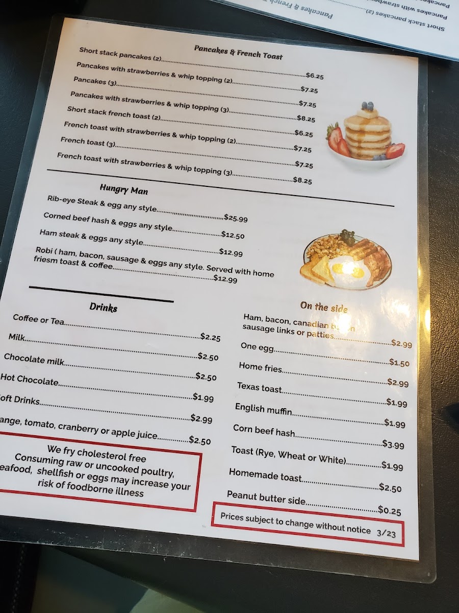 Robi (Ham, Bacon, Sausage & Eggs Any Style. Served With Home Friesm Toast & Coffee